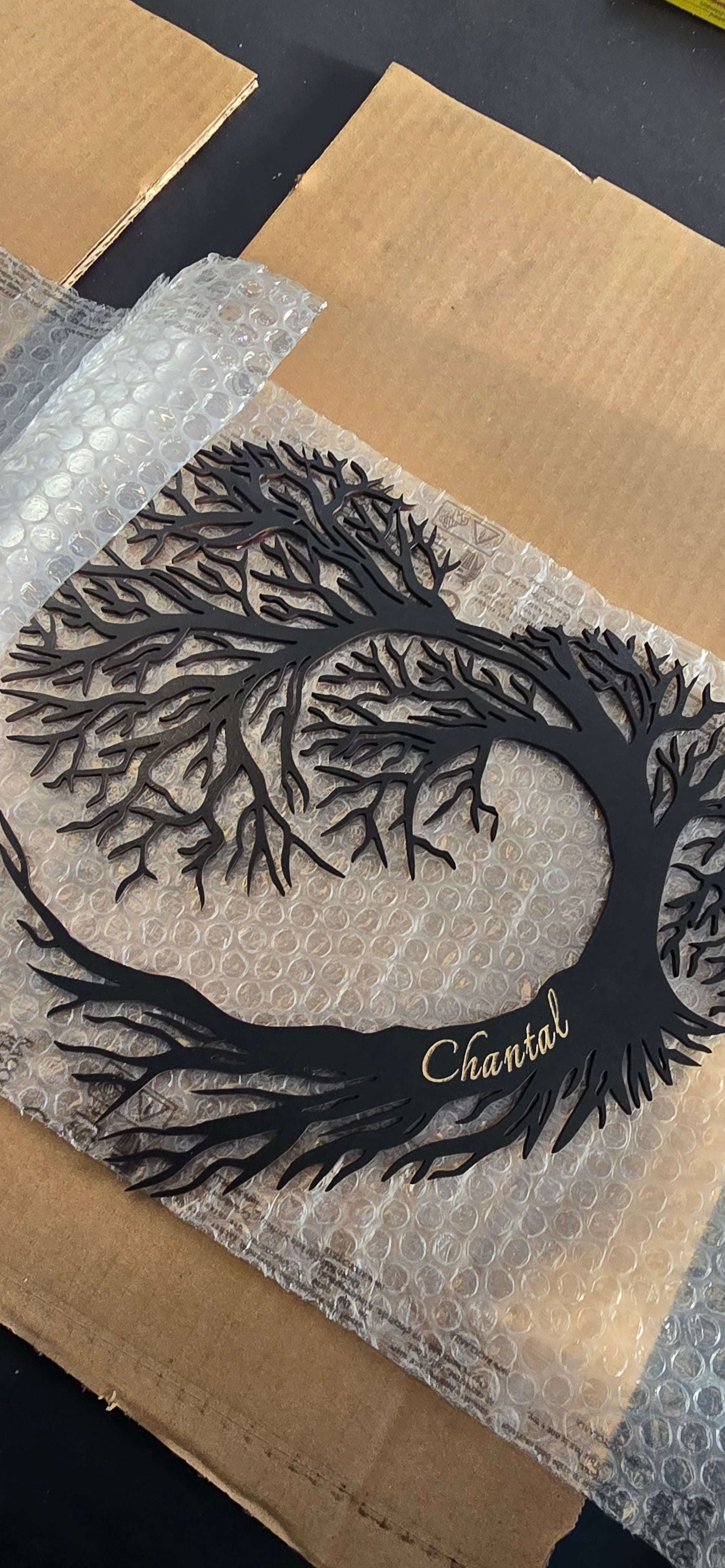 🪵 Fabrication artisanale dans notre atelier, chaque pièce est découpée et gravée avec soin pour un rendu élégant et durable.